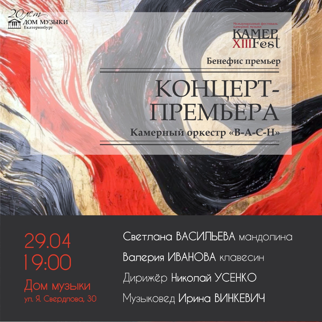 В этот вечер на сцене Дома музыки будут звучать произведения, представленные здесь впервые. Дебютными они станут и в исполнении оркестра «B-A-C-H». Отдельные же сочинения впервые откроются и слуху многоискушенного екатеринбургского меломана!