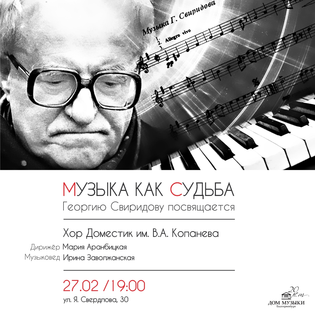 «Музыка как судьба» звучит название сборника своеобразных литературных размышлений Георгия Свиридова и в то же время становится заглавием концерта, посвященного одному из самых выдающихся композиторов современности.