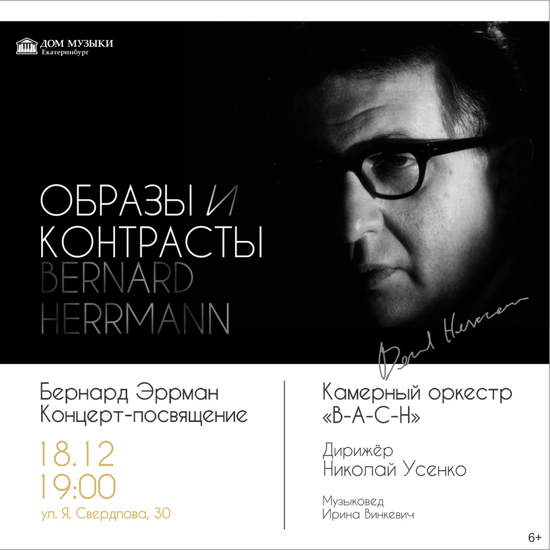 В год 50-летия со дня смерти выдающегося американского композитора камерный оркестр B-A-C-H приглашает в загадочную атмосферу музыкальных образов Бернарда Эррмана, в эпоху черно-белой эстетики, киношедевров и романтики нуар!..